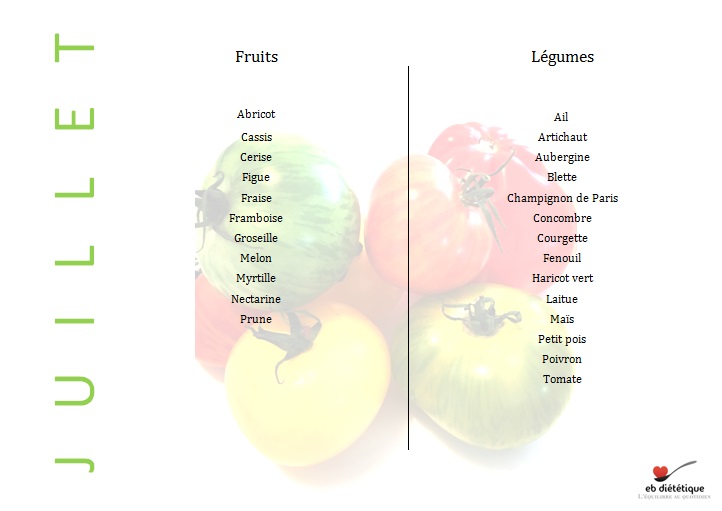Fruits et légumes de saison, Juillet Fruits et légumes du mois de juillet 2 juillet 2018 by Elise Leave a comment Fruits et légumes du mois de juillet Share