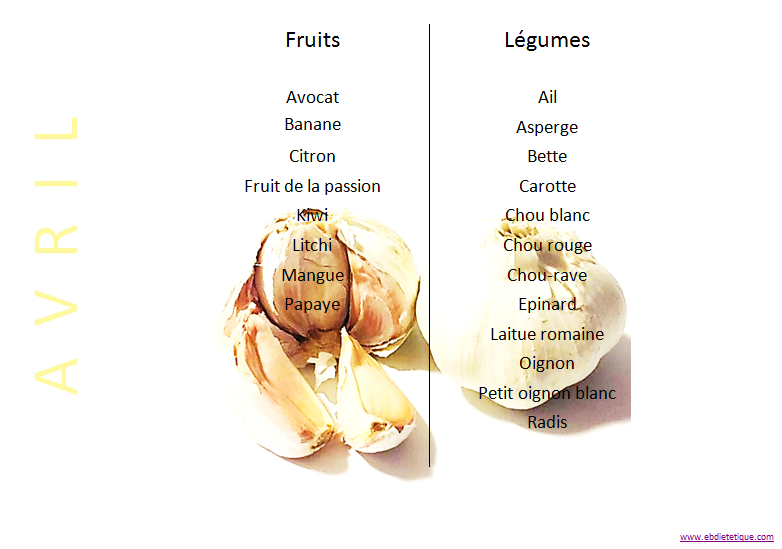 Avril Fruits et légumes du mois d’avril 1 avril 2018 by Elise Leave a comment Fruits et légumes du mois d’avril Share