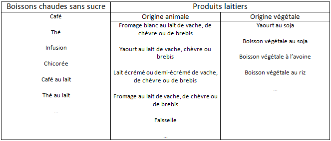 Il est possible de modifier les composantes des petits déjeuners selon vos goûts et vos convictions.