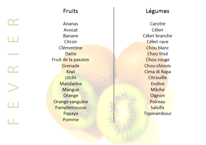 Diététique, Février, Fiches pratiques Fruits et légumes du mois de février 9 février 2018 by Elise Leave a comment Fruits et légumes du mois de février Share