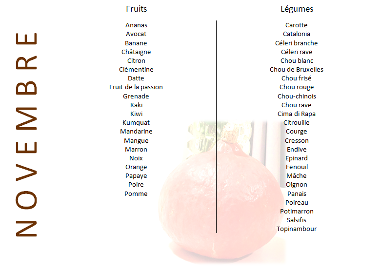 Diététique, Fiches pratiques, Novembre Fruits et légumes du mois de novembre 6 novembre 2017 by Elise Leave a comment Fruits et légumes du mois de novembre Share